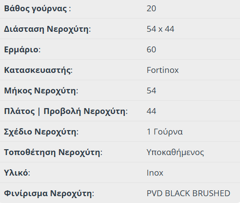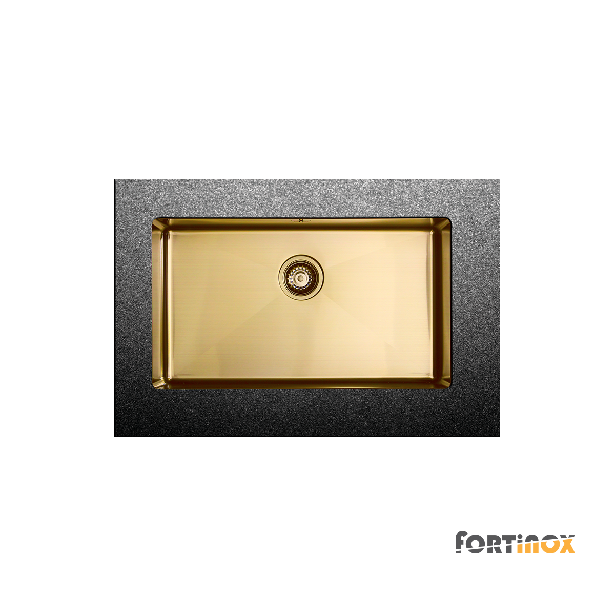 Νεροχύτης υποκαθήμενος από ανοξείδωτο χάλυβα AISI304 με επεξεργασία PVD. Διάσταση 74×44 εκ. με 1 γούρνα, για ερμάριο 80 εκ. Σειρά SQUADRO Fortinox