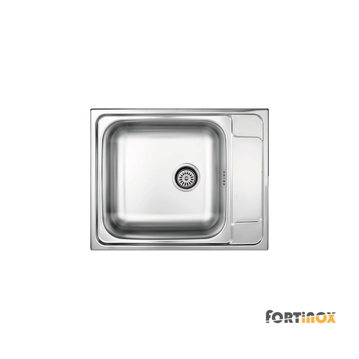 Νεροχύτης ανοξείδωτος 63×50 εκ. αντιστρεφόμενος με 1 γούρνα & πάγκο εργασίας, για ερμάριο 60 εκ., της σειράς Valley, Fortinox