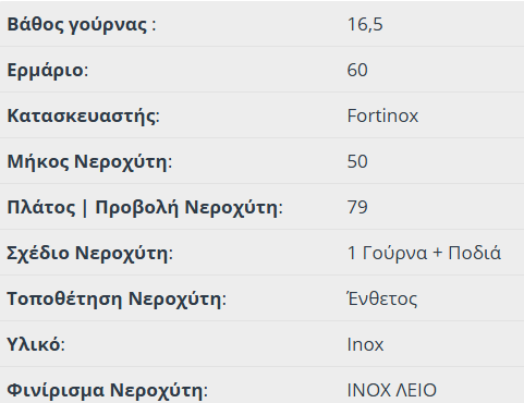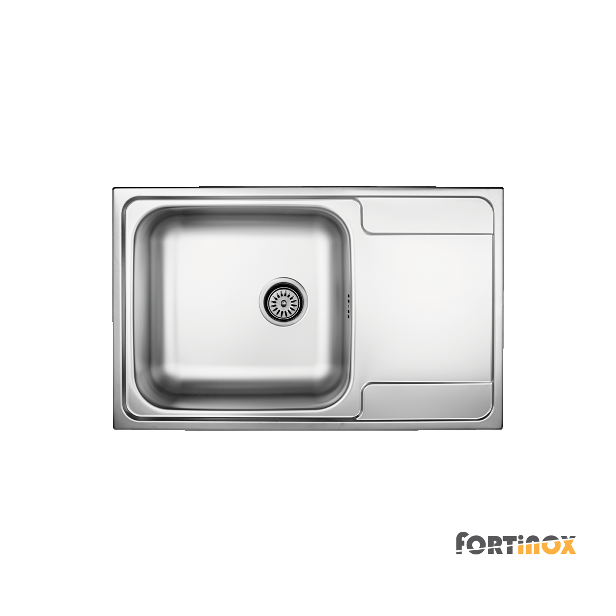 Νεροχύτης ανοξείδωτος 79×50 εκ. αντιστρεφόμενος με 1 γούρνα & πάγκο εργασίας, για ερμάριο 60 εκ., της σειράς Valley, Fortinox