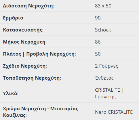 Νεροχύτης granite ένθετος CITY CRISTALITE 86×50 με 2 γούρνες για ερμάριο 90 εκ., SCHOCK Γερμανίας