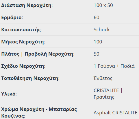 Νεροχύτης Κουζίνας Γρανίτη Element 100×50 Schock Cristalite Asphalt Granite