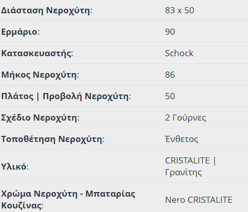 Νεροχύτης Κουζίνας Γρανίτη Element 86×50 Schock Cristalite Nero Granite