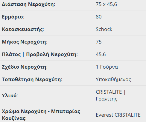 Νεροχύτης granite υποκαθήμενος MANHATTAN CRISTALITE 75×45,6 με 1 γούρνα για ερμάριο 80 εκ., SCHOCK Γερμανίας