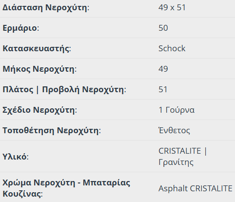 Νεροχύτης Κουζίνας Γρανίτη Manhattan 49×51 Schock Cristalite Asphalt Granite