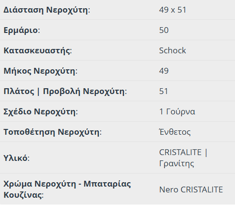 Νεροχύτης granite ένθετος MANHATTAN CRISTALITE 49×51 με 1 γούρνα, για ερμάριο 45 εκ., SCHOCK Γερμανίας