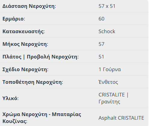 Νεροχύτης granite ένθετος MANHATTAN CRISTALITE 57×51 με 1 γούρνα για ερμάριο 60 εκ., SCHOCK Γερμανίας