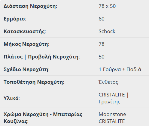 Νεροχύτης Κουζίνας Γρανίτη Manhattan 78×50 Schock Cristalite Moonstone Granite