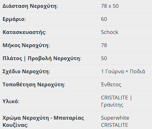 Νεροχύτης Κουζίνας Γρανίτη Manhattan 78×50 Schock Cristalite SuperWhite Granite
