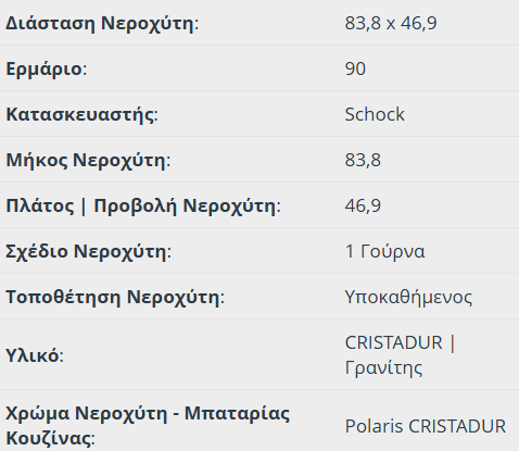 Νεροχύτης Κουζίνας Γρανίτη Mono Υποκαθήμενος 83,8×46,9 Schock Cristadur Polaris Granite