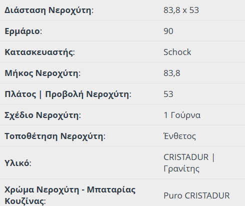 Νεροχύτης Κουζίνας Γρανίτη Mono 83,8×53 Schock Cristadur Puro Granite