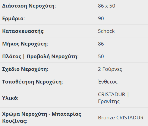 Νεροχύτης Κουζίνας Γρανίτη Mono 86×50 Schock Cristadur Bronze Granite