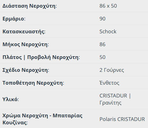Νεροχύτης Κουζίνας Γρανίτη Mono 86×50 Schock Cristadur Polaris Granite