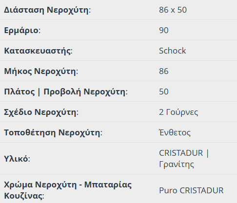 Νεροχύτης Κουζίνας Γρανίτη Mono 86×50 Schock Cristadur Puro Granite