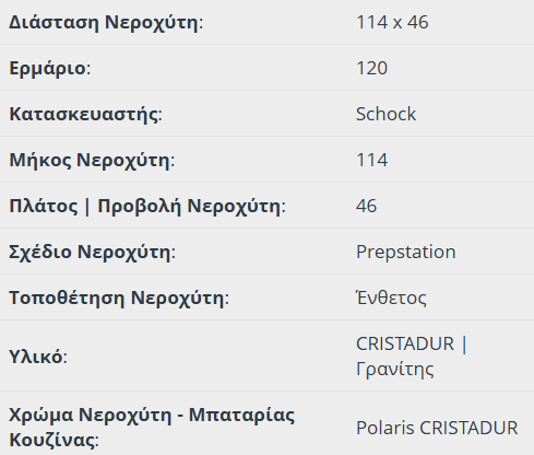 Νεροχύτης granite ένθετος PREPSTATION CRISTADUR 114×46 με 2 γούρνες και πάγκο εργασίας για ερμάριο 120 εκ., SCHOCK Γερμανίας