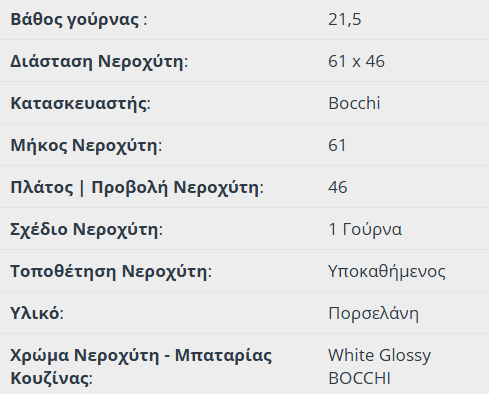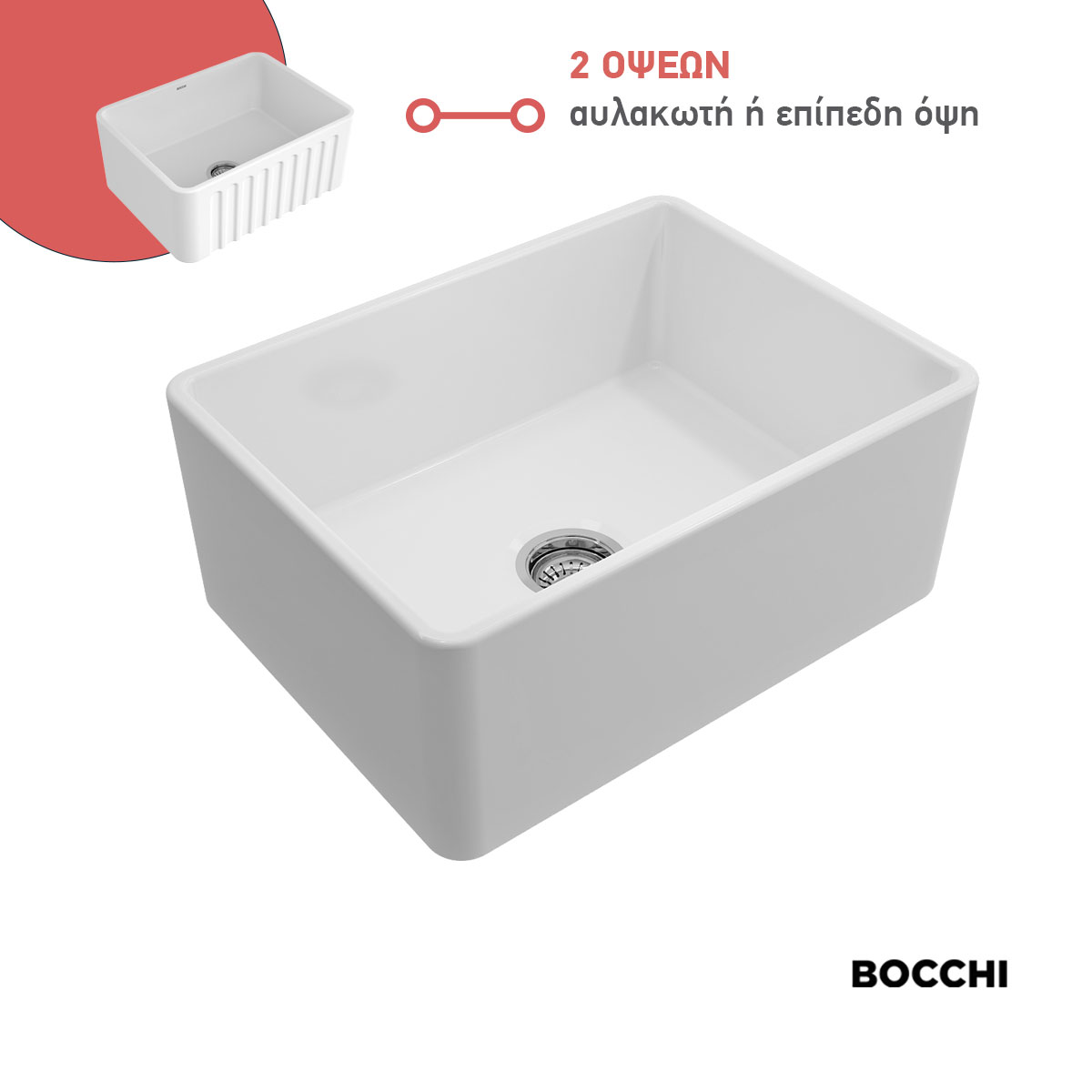 Νεροχύτης πορσελάνης BOCCHI. Τον επιλέγω, γιατί είναι:
