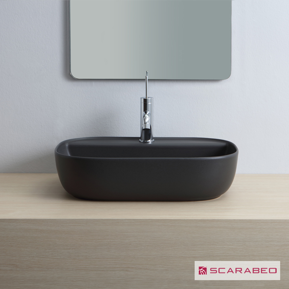 Νιπτήρας Πορσελάνης Glam56/R 56×38 (1 οπή) Scarabeo Ardesia (Black Matt)