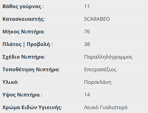 Νιπτήρας Πορσελάνης Glam76/R 76×38 (1 οπή) Scarabeo White