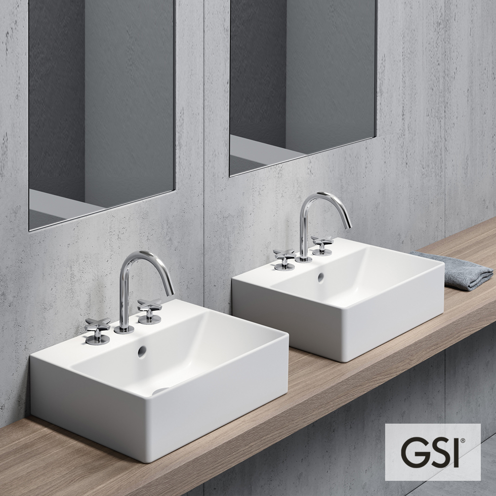 Νιπτήρας Πορσελάνης Kube-X 45×35 (1 οπή+2 προχ.) GSI White